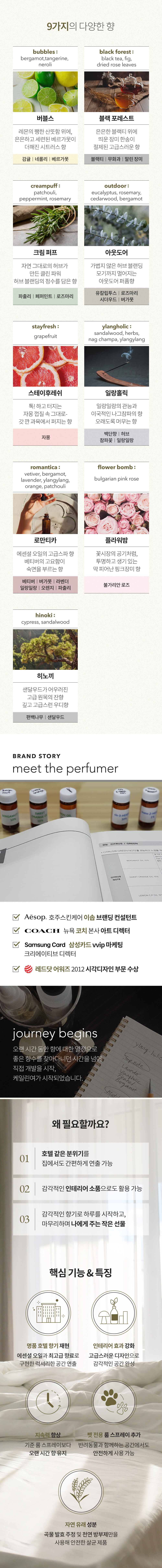 • 파출리, 페퍼민트, 로즈마리 등의 프레쉬한 허브계열로 머리가 맑아지는향